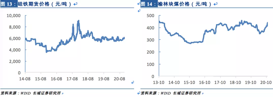 硅铁价格近两年保持平稳:硅铁是原镁生产成本中占比最大的部分,以目前的价格测算,约占51%。2017年受环保监管加强影响硅铁供需失衡,价格大幅攀升,一度接近9000元/吨;后续随着环保因素消退,新增产能逐渐投产,硅铁价格恢复理性,目前保持5000-6500元/吨水平。