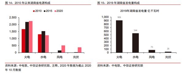 2019年湖南省内发电量为1551亿千瓦时,其中火电为906亿千瓦时,水电、风光等清洁能源发电量在整体发电量中占比已经达到41.5%,可见湖南省对于出力不稳、无法及时响应的清洁能源供给依赖度较高。湖南当地冬季供暖需求旺盛,而且供暖主要依赖电力, 因此当地的居民用能需求在冬季旺盛,进一步加剧当地电网的调峰压力。根据国网湖南有限公司举行的“2020年湖南电力迎峰度冬动员暨防冻融冰视频会”披露,近期湖南省高峰时段的电力需求负荷已经超过3,000万千瓦,在丰水期该负荷带来的压力尚还可控,但是在冬季枯水期,供给对于极端需求响应能力不足的矛盾开始暴露。