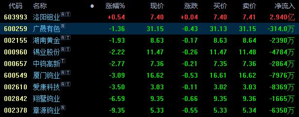 截止本周五收盘,钨上市公司涨少跌多,具体为:仅洛阳钼业涨近1%,广晟有色跌超1%,湖南黄金跌近2%,锡业股份跌超2%,中钨高新跌近3%,厦门钨业跌、爱康科技跌超3%,翔鹭钨业跌近7%,章源钨业跌超9%。