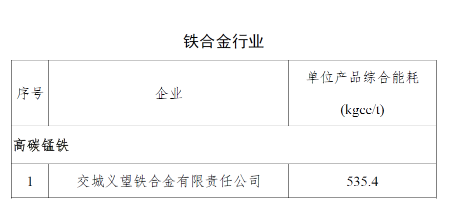 中国铁合金网讯:工信部发布最新2020 年重点用能行业能效“领跑者”企业名单,其中铁合金行业交城义望铁合金有限责任公司上榜。