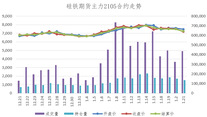 【期货行情】本周硅铁期货2105主力合约盘面下行。