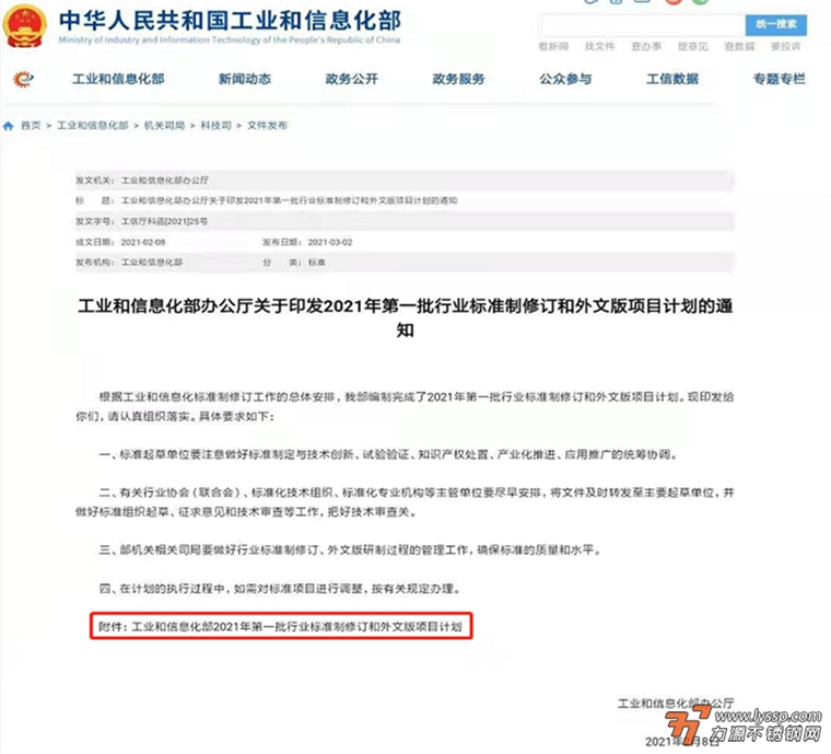 3月2日,工业和信息化部批准了2021年第一批行业标准制修订计划。其中青拓集团有限公司牵头或参与了2021-0121T-YB《装饰用不锈钢冷轧钢板和钢带》、2021-0355T-YB《铬-锰-镍-氮系奥氏体不锈钢热轧钢板和钢带》和2021-0356T-YB《铬-锰-镍-氮系奥氏体不锈钢冷轧钢板和钢带》等三个行业标准,标准中涵盖了QN系五大产品。
