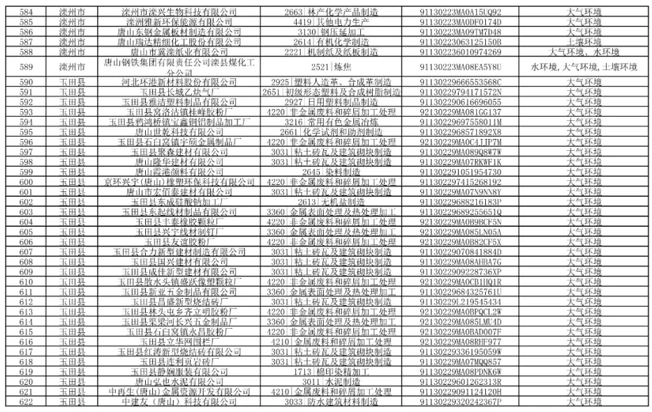 | 586 | 滦州市 | 唐山东钢金属板材制造有限公司 | 3130|钢压延加工 | 91130223MA09TM7D48 | 大气环境 |