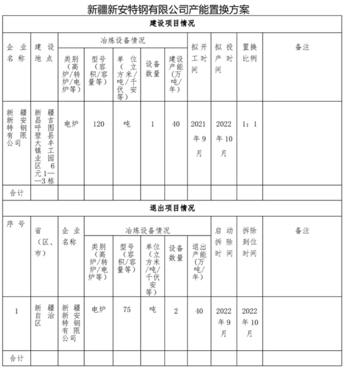 按照《国务院关于化解产能严重过剩矛盾的指导意见》 、《国务院关于钢铁行业化解过剩产能实现脱困发展的意见》和《钢铁行业产能置换实施办法》要求,现将《新疆新安特钢有限公司产能置换方案》予以公示,欢迎社会公众进行监督。公示期为2021年8月20日-9月17日,如有异议,请以书面形式向我厅反映情况。