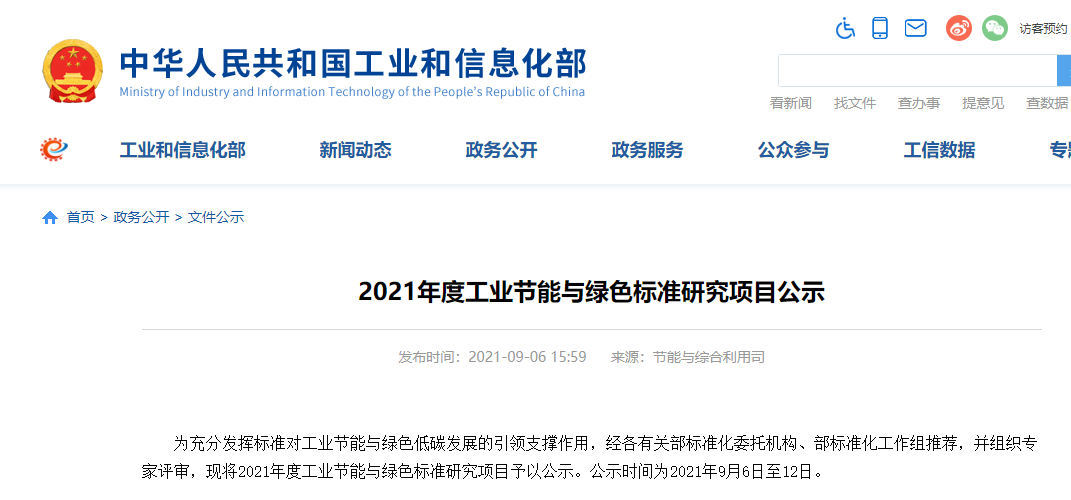 为充分发挥标准对工业节能与绿色低碳发展的引领支撑作用,经各有关部标准化委托机构、部标准化工作组推荐,并组织专家评审,现将2021年度工业节能与绿色标准研究项目予以公示。公示时间为2021年9月6日至12日。