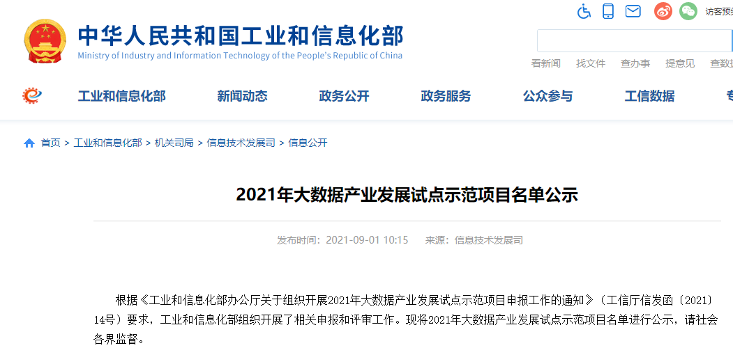 其中具体名单点击:2021年大数据产业发展试点示范项目公示名单