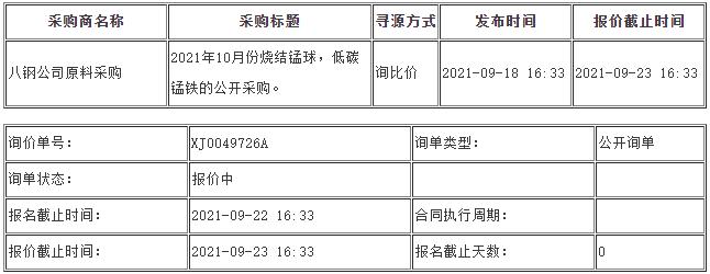 (一)、标的名称:2021年10月份烧结锰球,低碳锰铁的公开采购。