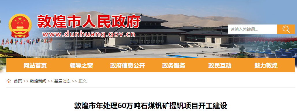 中国铁合金网:10月10日,敦煌市胡杨林钒业有限责任公司年处理60万吨石煤钒矿提钒项目在方山口地区开工建设,填补了酒泉市五氧化二钒应用领域的空白。据了解,该项目总投资6.2亿元,占地约51公顷,总建筑物面积2.1万平方米,采用拌酸熟化提钒新技术,具有不冒烟、不排水、无污染、综合回收率高、矿石适应性强、产品质量好等优点。项目建成投产后,将年处理矿石60万吨,年产五氧化二钒4500吨,每年可实现销售收入5.4亿元,预计纳税1亿元左右,增加就业岗位180个。
