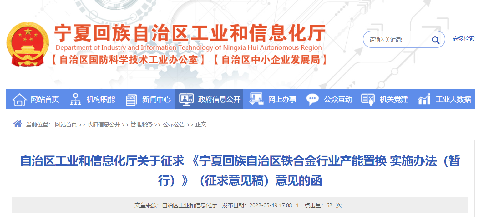 宁夏回族自治区铁合金行业产能置换实施办法(试行)