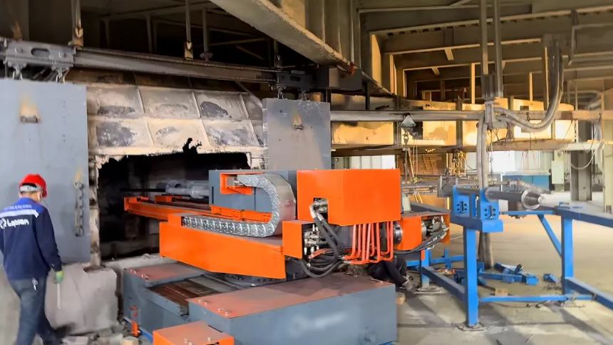 如今,分厂的车间里机器轰鸣,全自动圆盘浇注、全自动开堵眼系统、余热锅炉及自动输配料系统等设备高效作业,从原料处理到运输出库,设备运转率高达99.5%。分厂一号炉炉长肖文林亲眼见证了分厂多年来的变化,他激动地说:“‘开眼’这项工序以前需要五六个人扛着十几斤重的辕钢去开,费时费力又危险。现在我一个人用手里的这个‘遥控器’几分钟就能搞定。”