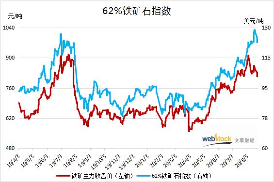 8月26日62%铁矿石指数反弹1.44%至123.25美元/吨