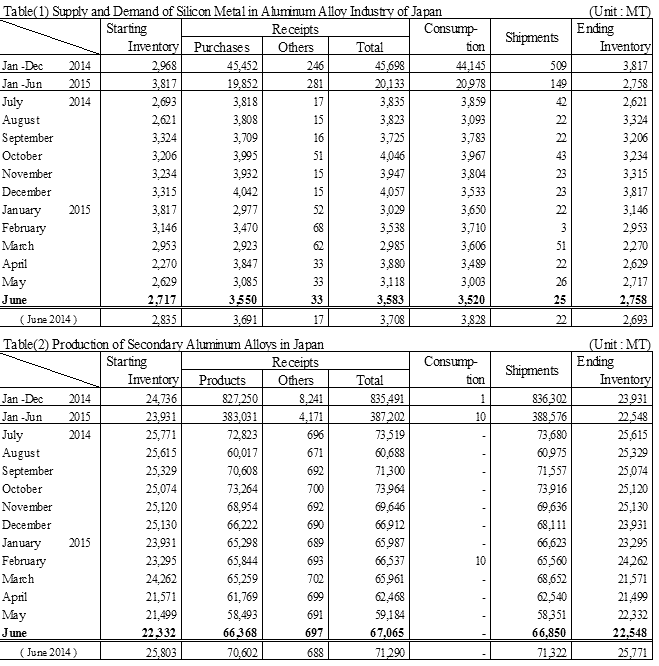 2015年上半年日本硅铁进口量小幅下降4.6%