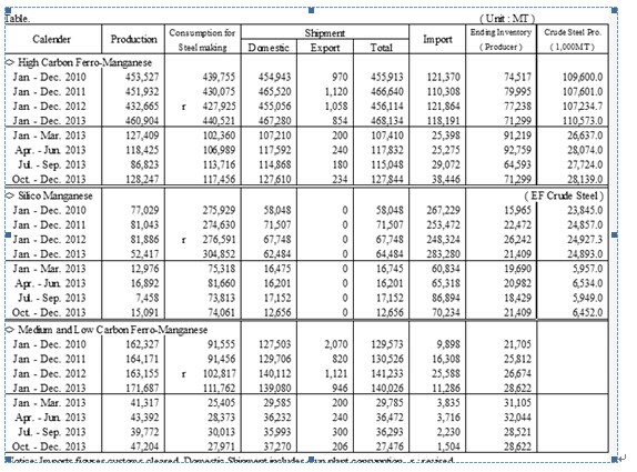 中国铁合金网讯:据外媒报道,得益于粗钢产量的增长,2013年硅锰合金和锰铁合金的消耗均出现了一定程度的增加,而另一方面,硅锰产量则出现一定的回落,从而导致进口量的增加。 |