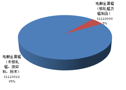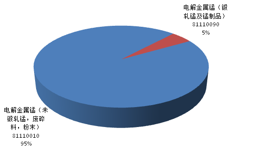 2016年1月中国锰及其制品(包括废碎料)出口26,206.72吨,其中电解锰占比为95%