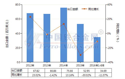 2012-2016年8月钙进出口贸易总额及发展趋势