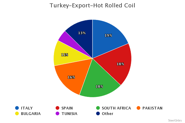 根据土耳其统计研究所(TUIK)提供的数据,今年1月,土耳其热轧卷材(HRC)出口总额与去年12月相比下降50.9%,至109640吨,同比下降59.1%。这些出口价值为600.02万美元,环比下降50.0%,与2020年同月相比下降48.6%。 |