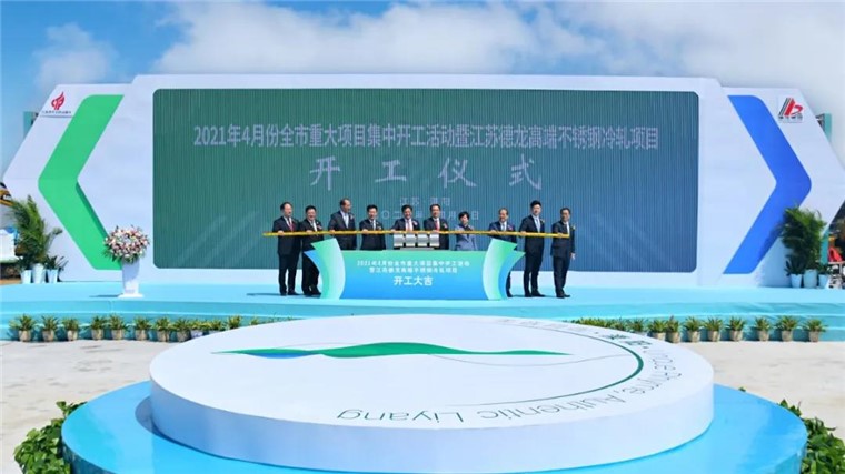 4月9日上午,2021年4月份全市重大项目集中开工活动暨江苏德龙高端不锈钢冷轧项目开工仪式在江苏省中关村高新区隆重举行,计划总投资246.08亿元的20个5000万元以上产业项目集中开工。 |
