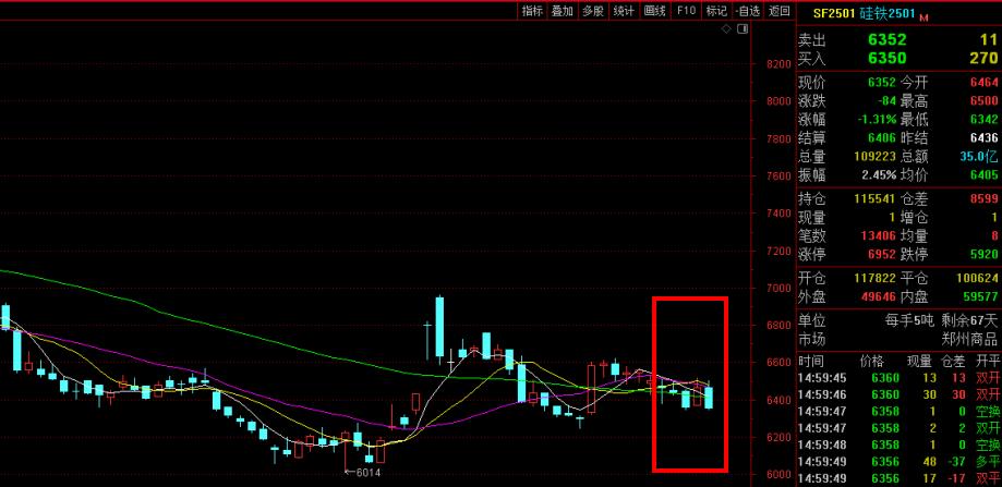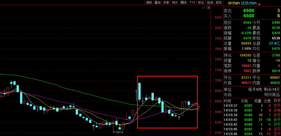 10月25日硅铁期货盘面上涨4.94% 收盘6584