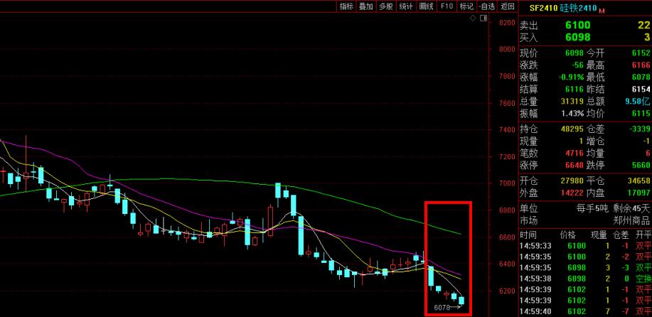 9月5日硅铁期货盘面下跌0.55% 收盘6134