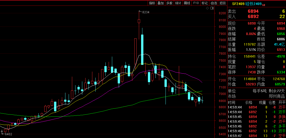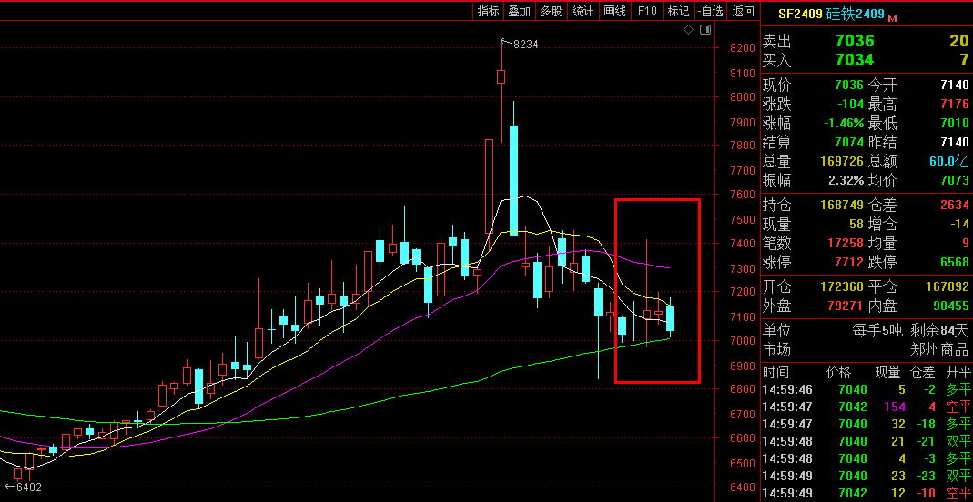 6月19日硅铁期货盘面上涨0.54% 收盘7122