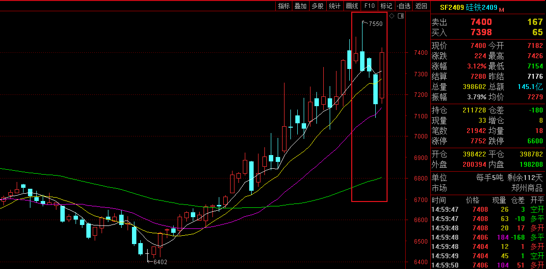 5月20日硅铁期货盘面上涨0.54% 收盘7396