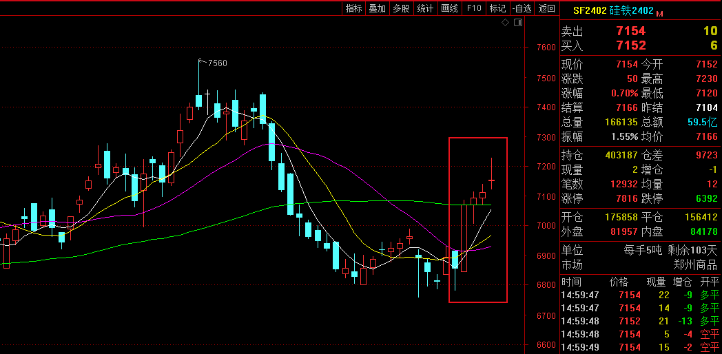 11月14日硅铁期货盘面上涨0.81% 收盘7186