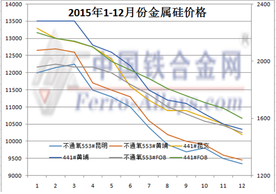 中国铁合金网讯:目前金属硅价格处于下行通道,国内主流黄埔港、天津港低品位冶金级金属硅553-441的跌势均出人意料,目前不通氧553#价格为**元/吨-**/吨不等,相比4月份价格已跌**元/吨。尽管云南德宏地区电价下调而目前云南地区硅厂并未大幅投产一是目前价格下跌不支撑成本,二是... |