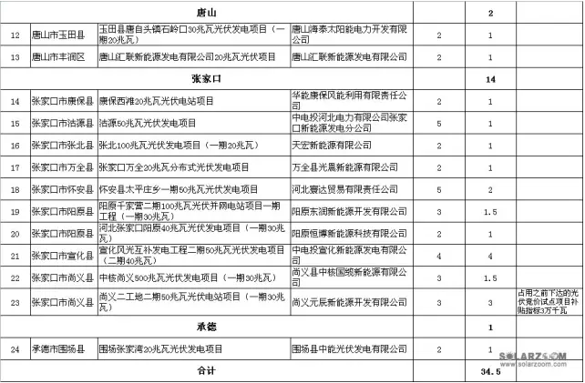 河北省公示2015年12月份第二批345MW并网补贴光伏项目