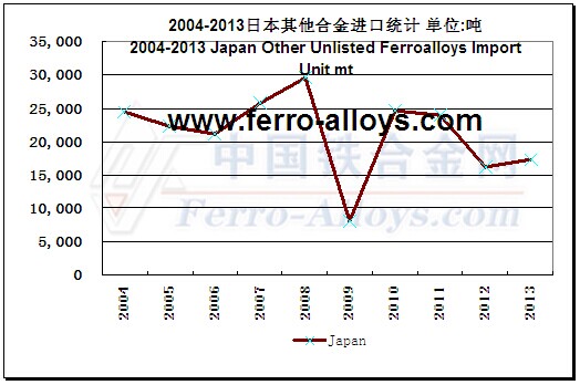 2004-2013日本其他未列名铁合金进口统计 2004-2013 Japan's Other unlisted ferroalloys Import statistic |