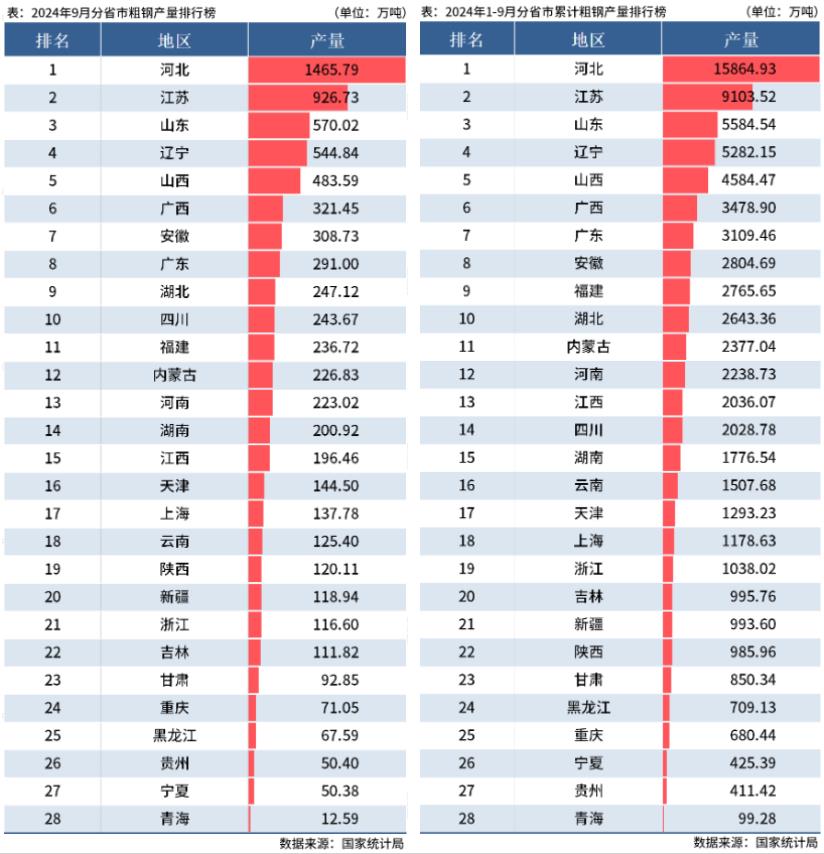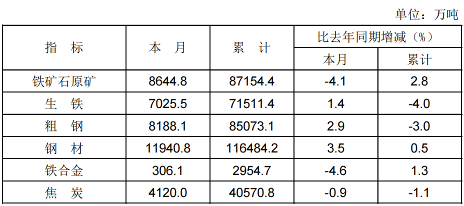 据国家统计局数据显示,2024年11月份,我国粗钢产量7840万吨,同比增长2.5%;1-11月,我国粗钢产量92919万吨,同比下降2.7%。 |