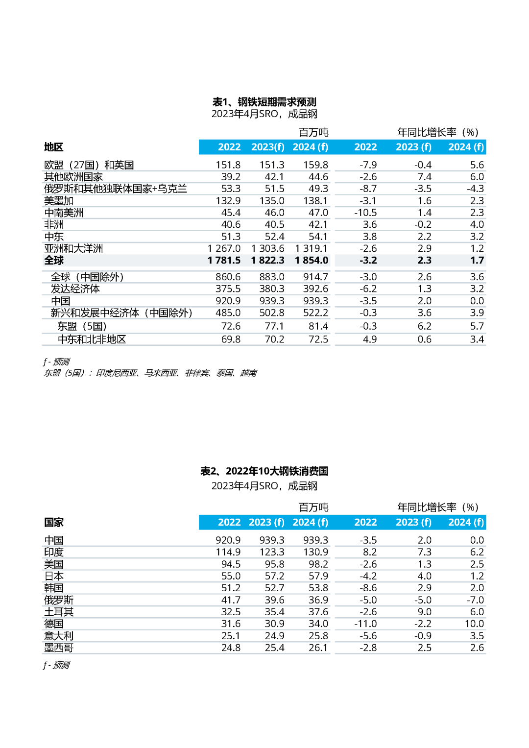 世界钢铁协会发布2023年4月版短期钢铁需求预测报告