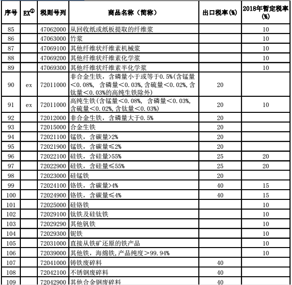 根据《中华人民共和国进出口关税条例》相关规定,自2018年1月1日起,对部分商品的进出口关税进行调整,具体内容见《2018年关税调整方案》。 |