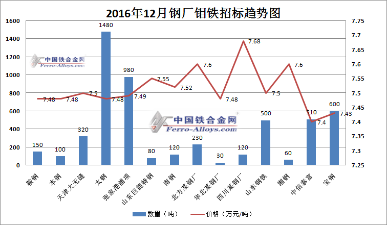 中国铁合金网讯:2016年12月,中国主产区高碳铬铁价格环比上月下行。截止今日,主产区高碳铬铁出厂报价至10200-10300元/50基吨  |