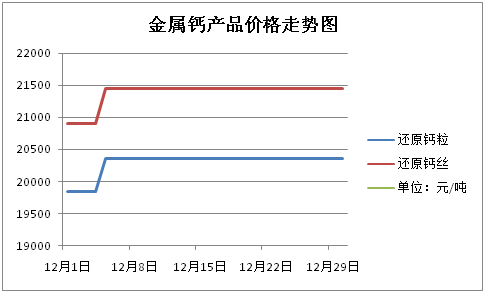 中国铁合金网讯:据本网站了解,11月底金属钙市场价格仍有上涨,上涨幅度在500-700元/吨。山西河南地区,Ca 97%min,0-2mm还原金属钙粒,主流出厂含税价格在19800-19900元/吨左右, Ca97%min ∮7.5㎜还原钙丝主流出厂含税价格在21600-21700元/吨左右。金属钙的价格与10月份相比,涨...  |