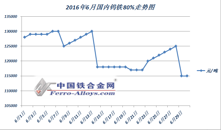 中国铁合金网讯:六月份,国内钨市成交冷清,下游钨制品行情低迷,市场需求持续萎靡,钨企联合保价,价格反而小幅下滑,业内保持观望,钨价难以止跌,大型钨矿山心态犹存,国内钨市场难寻利好。国内大型钨矿山挺价心态犹存,但下游冶炼厂采购压价情绪不减,钨矿市场屡有低价货源流... |