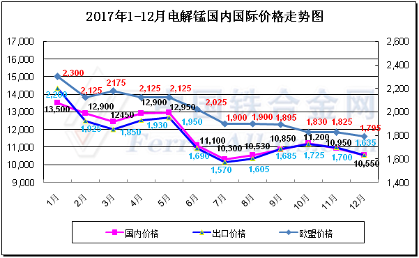 12月份电解锰市场价格小幅下行后转小幅上涨;电解锰产量较上月有所减少;11月份出口量较上月增加明显;12月份锰片、锰锭、锰球钢厂招标价格均不同程度下调。 |