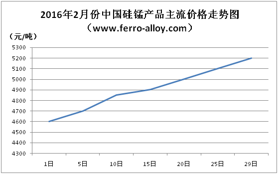 中国铁合金网报道:在2月份,国内硅锰6517主流出厂承兑含税价格从月初的4600-4700元/吨一路上涨到5200-5300元/吨。 |