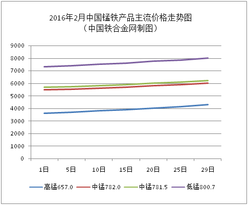 一、2016年1月份中国硅锰价格走势 中国的硅锰市场经历了2015年的多次下跌,市场价格每月下调,从2015年1月的6100元/吨,下调到12月的4100元/吨,下调幅度深达2000元/吨。在2016年1月份,硅锰产品的价格峰回路转,市场主流价格一路反弹到4600-4700元/吨,让人感慨“野百合也有春天... |