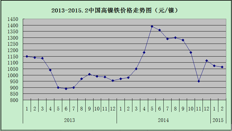 The following chart was high FeNi price of China from 2013 to Feb. of 2015(Unit: RMB/Ni)