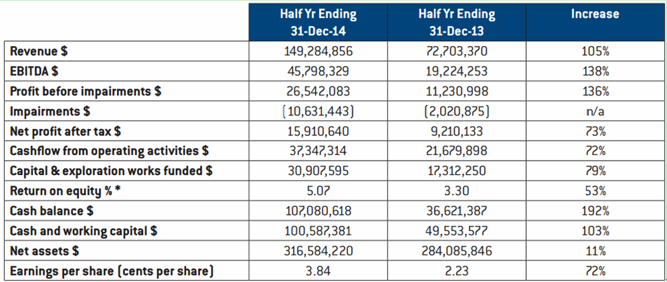 Key financial highlights for the half 1year of 2014(2013/2014 FY)compared to the previous year were: