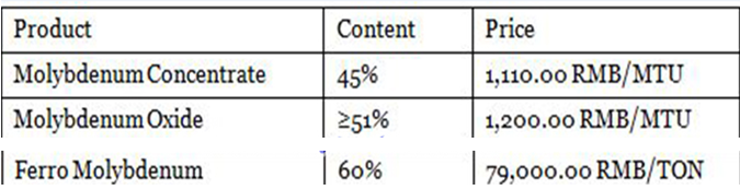 Molybdenum market quotation: the latest prices of molybdenum concentrate, molybdenum oxide and ferromolybdenum continue to rise.
