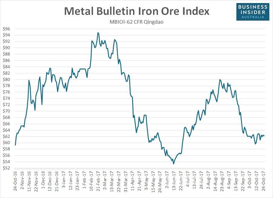 According to Metal Bulletin, the spot price for benchmark 62% fines fell 0.3% to $62.24 a tonne, extending the sequence of moving in the opposite direction from the day before to five.