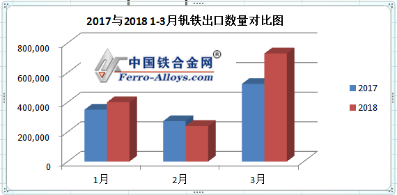 Comparison chart of export quantity of Ferro-vanadium from Jan. to Mar. of 2017 and 2018