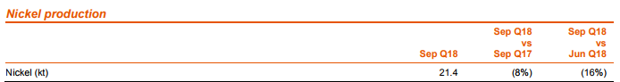 [ferro-alloys.com]Nickel West production decreased by eight percent to 21 kt. On 23 September 2018, operations at the Kalgoorlie smelter were suspended following a fire which caused damage to a localised area in the furnace building.