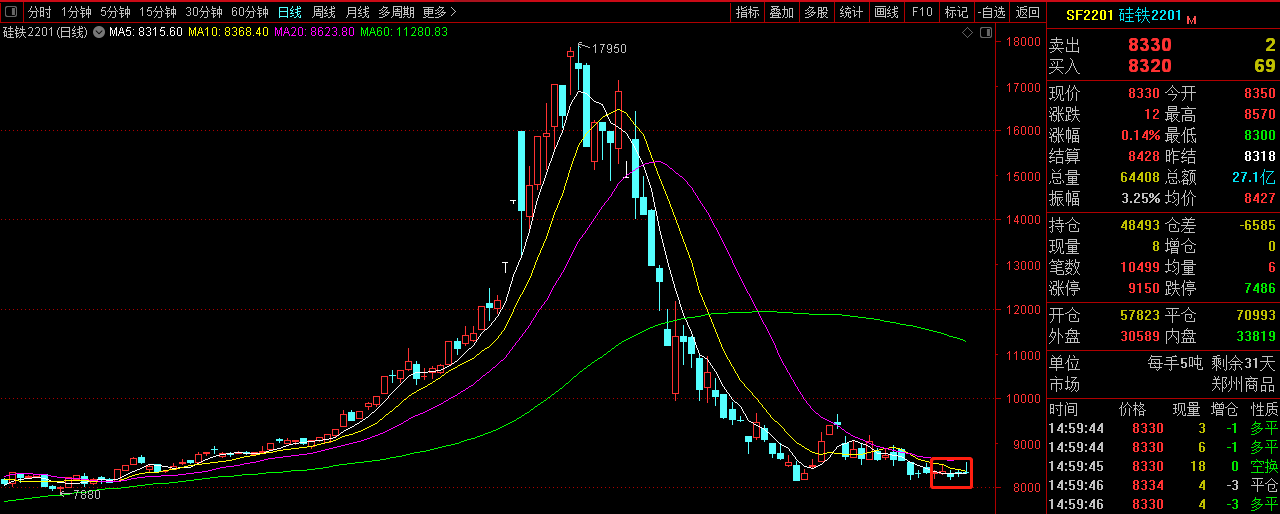 Below are ferrosilicon futures main contract 2201 daily specific performances of this week: