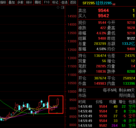 Ferrosilicon futures fell first and then rose this week. The opening price of 2205 main contract of ferrosilicon futures this week was 8,948, the highest price was 9,628, the lowest price was 8,828, the closing price was 9,544, the settlement price was 9,400, the trading volume was 1,072,192, and the position was 136,474, an increase of 3.58%.