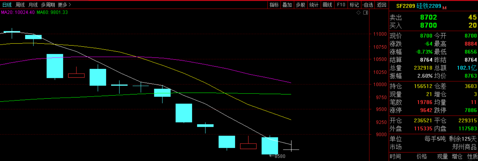 Below are ferrosilicon futures main contract daily specific performances: