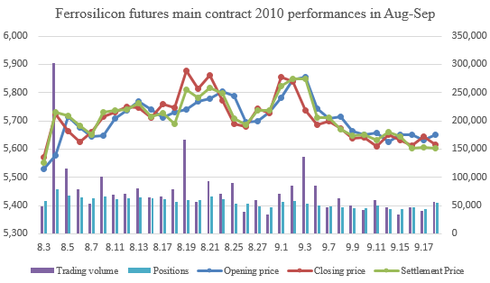 The 2010 ferrosilicon contract price on ZCE closed at 5614 yuan per ton on September 18. |