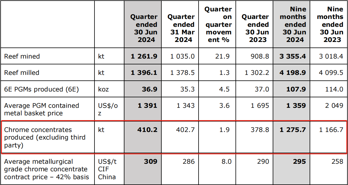 Tharisa, the mining, metals, and innovation company dual-listed on the Johannesburg and London stock exchanges, announces its production results for Q3 FY20241 and cash balance as at quarter end. |