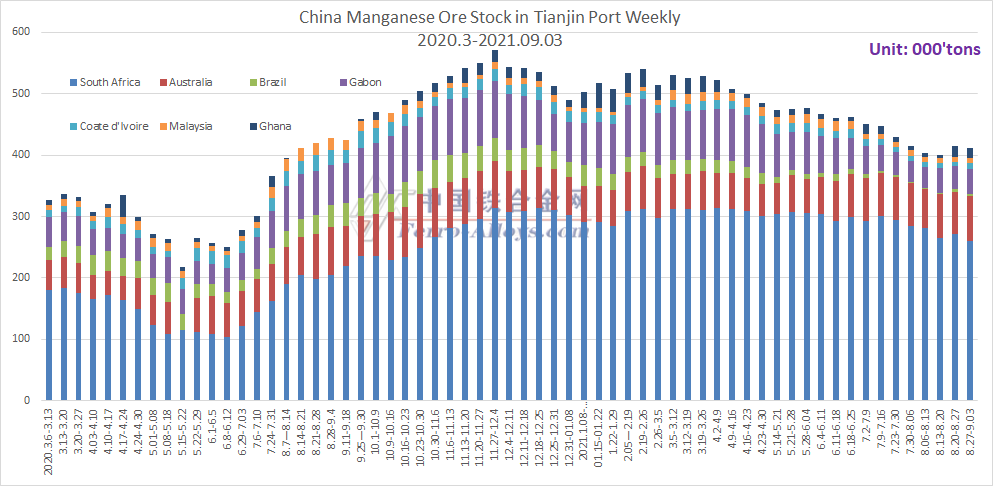 China Manganese Ore Stock in Tianjin Port Weekly |
